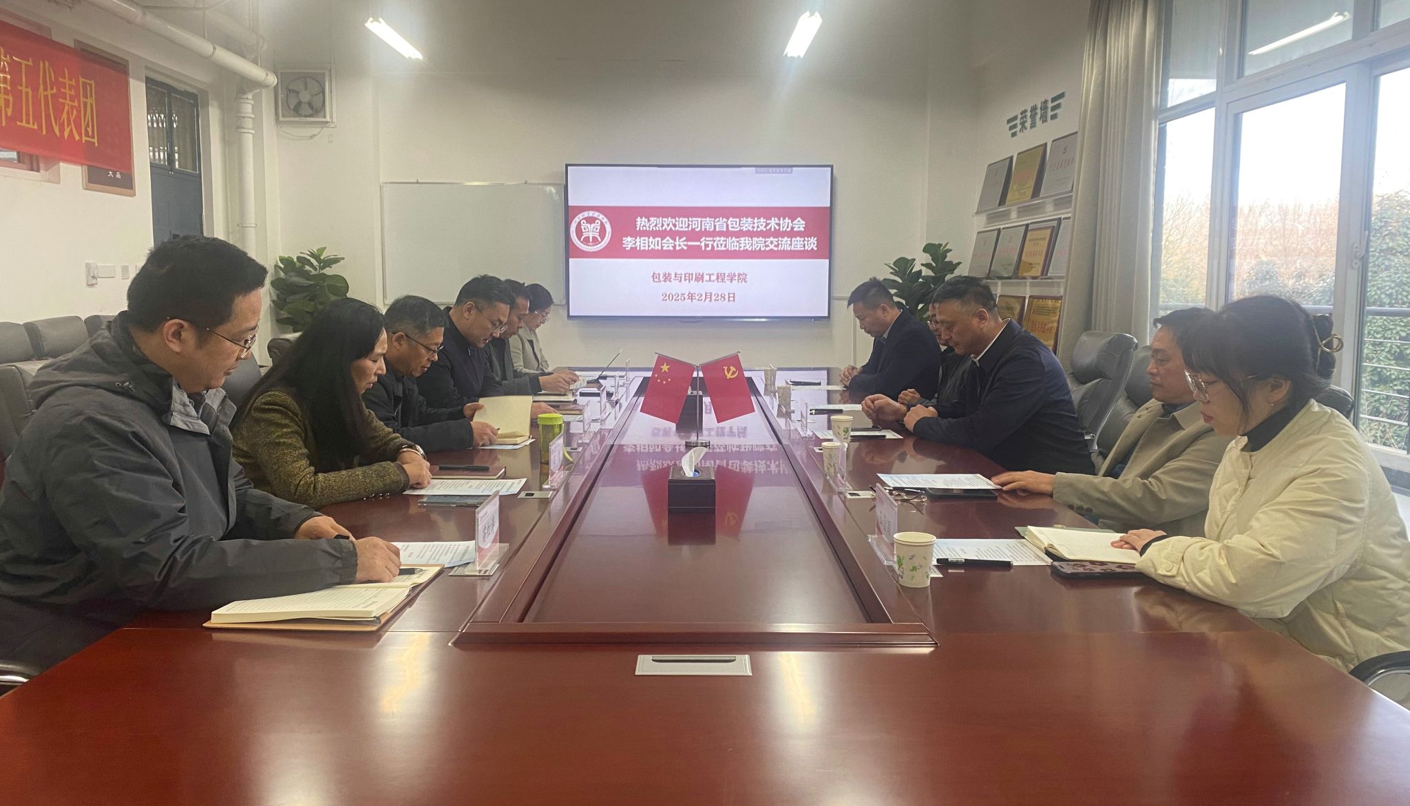 近日,河南省包装技术协会会长、河南泰隆经纬实业有限公司董事长李相如携该协会理事单位——河南中包科技有限公司、郑州中凌新材料科技股份有限公司相关负责人一行5人到包装与印刷工程学院洽谈合作事宜。威尼斯官网社会服务办公室主任胡华锋,包装与印刷工程学院领导班子成员及相关教师代表参会。