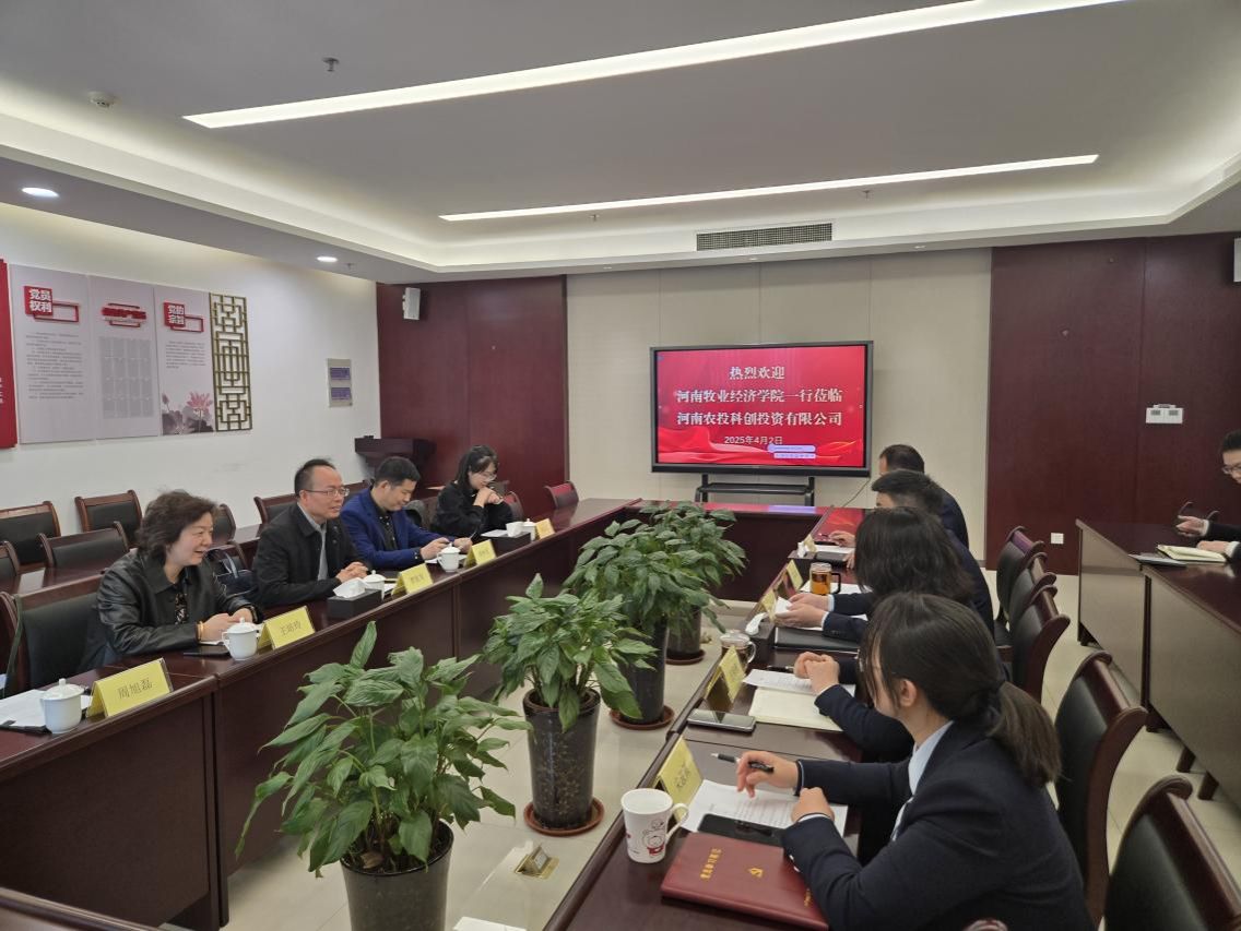在与农投科创、农投数科召开的座谈交流会上,贾宪军表示,近年来,学院积极践行学校牧工商一体化交叉融合创新发展的思路,聚焦农牧业金融,在多个方面取得了初步的建设成效。希望校企双方,在农牧金融社会服务、农牧原材料期货产品、农牧碳排放与碳汇核算等方面开展深度合作,共同推进“中原牧业金融联盟”“智慧农牧业金融实验室”等建设,为学生搭建通往农业金融领域的桥梁,共同推动河南农牧业的高质量发展。农投科创和农投数科的相关负责人均表示,期待与该院建立长期合作关系,共同破解农业金融领域的痛点问题,助力河南省从“农业大省”向“农业强省”跨越。