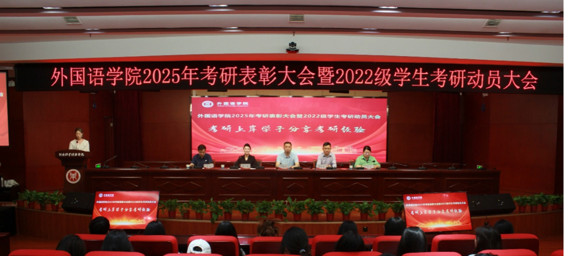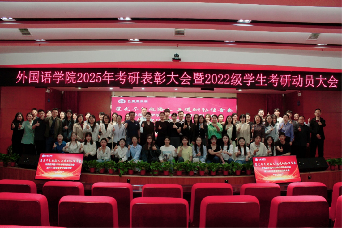 砥砺奋进结硕果,蓄势扬帆再启航。为巩固外国语学院学风建设,发挥榜样示范作用,4月24日,外国语学院在图书馆一楼报告厅召开2025届毕业生考研表彰大会。学院领导班子及师生代表参加会议。大会由学院党委副书记周倩主持。