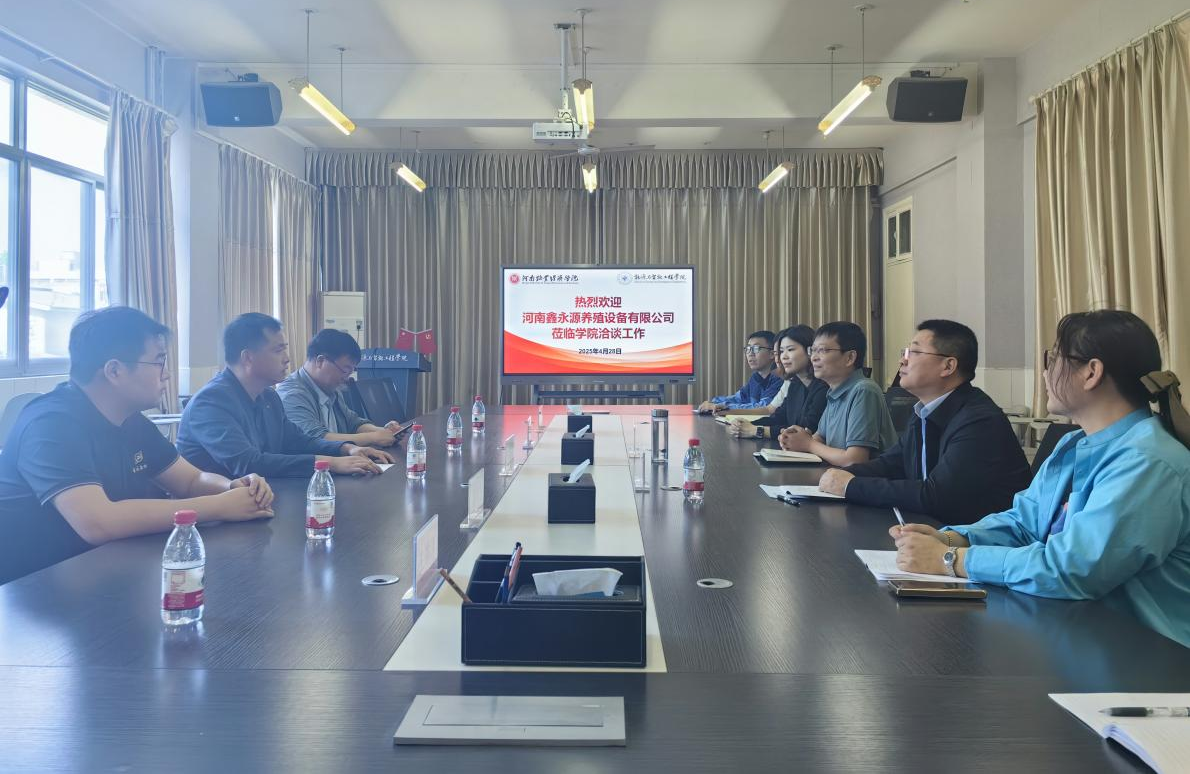 近日,河南鑫永源养殖设备有限公司总经理黄勇成一行到威尼斯官网能源与智能工程学院洽谈校企合作事宜。能源与智能工程学院院长王硕、学校科学技术处副处长史岳鹏等领导出席会议,学院相关教师参加会议。
