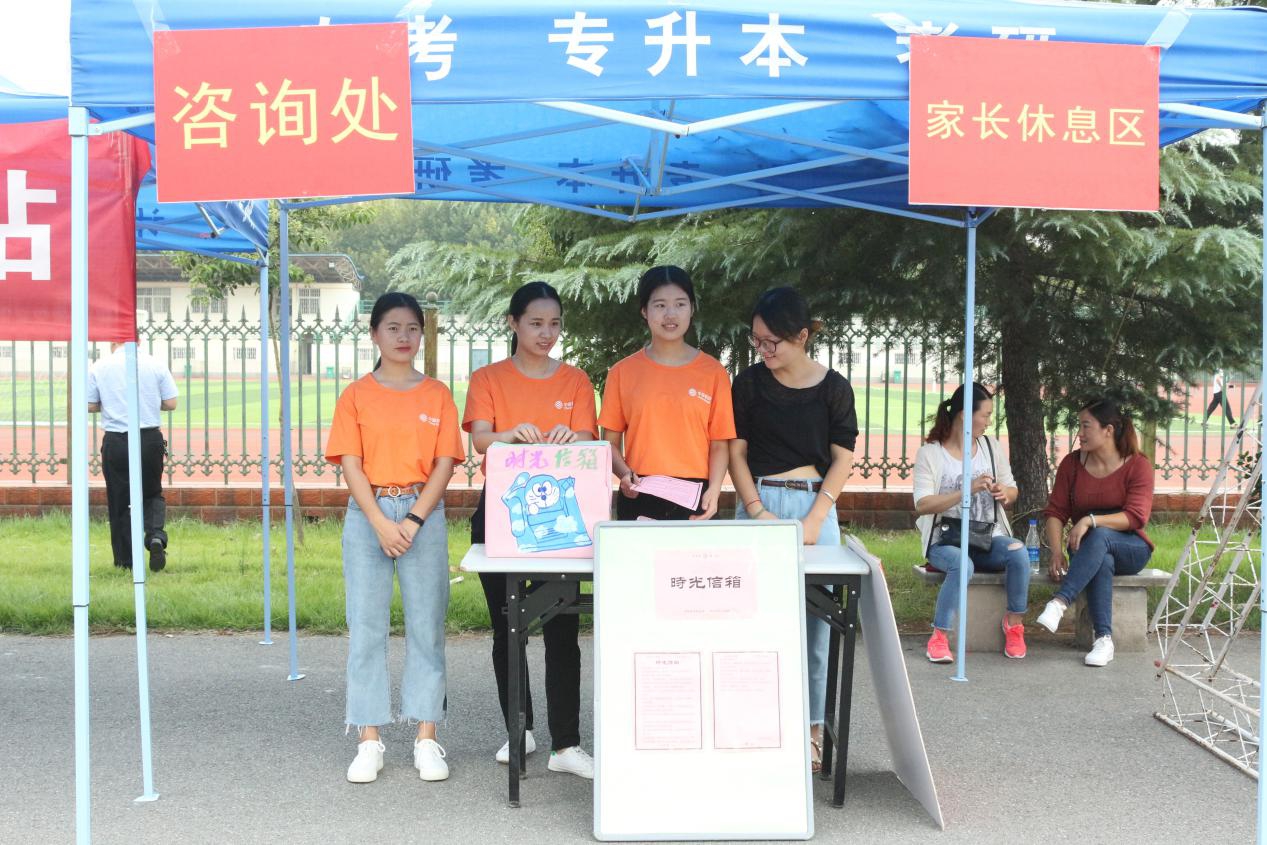 灵动活泼的版式设计,优美典雅的诗句,引来了众多教师、学生和家长驻足观赏、吟诵品味、拍照留念。这个创意,成功地给迎新工作增添了诗情画意,也巧妙地向新生彰显了文法系的专业特色。在报到现场,文法系还举办了“时光信箱”活动,让父母写下对孩子未来的期望并拍照留念。此举也赢得了学生和家长的好评。