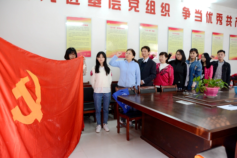 座谈结束后,宋之苓带领物流与电商学院和张门村党支部党员,一起重温入党誓词,进行入党宣誓。她号召党员一定要牢记入党誓词,牢记党的宗旨,不忘初心,脚踏实地,带领群众建设美丽乡村。