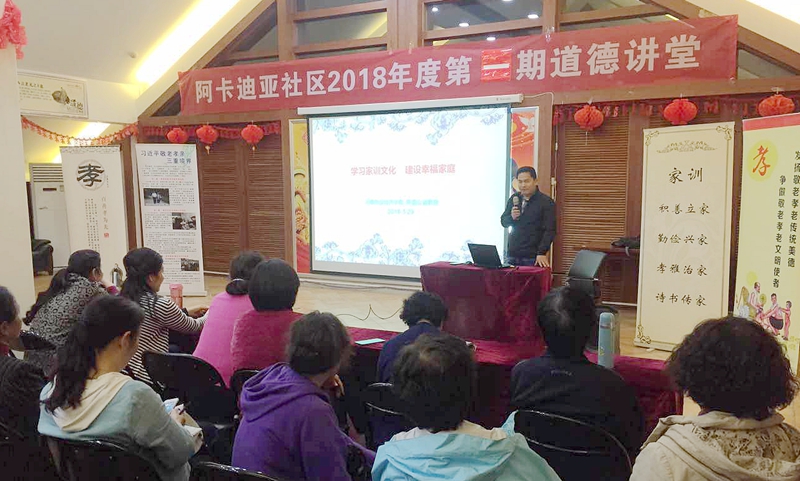 为弘扬优秀民族传统文化,践行社会主义核心价值观,近日,旅游学院组织老师走进阿卡迪亚社区,以“家风家教”为主题,为社区居民带去了一场文化盛宴。