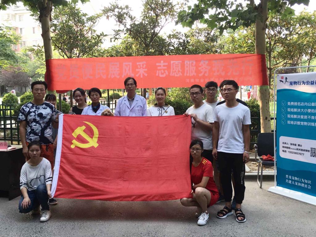 为弘扬志愿服务精神,近日,动物医学院教师党员米俊宪、张华、樊明明和部分学生党员组成党员志愿服务队,赴陈三桥社区开展“宠物问诊咨询义务服务”活动。