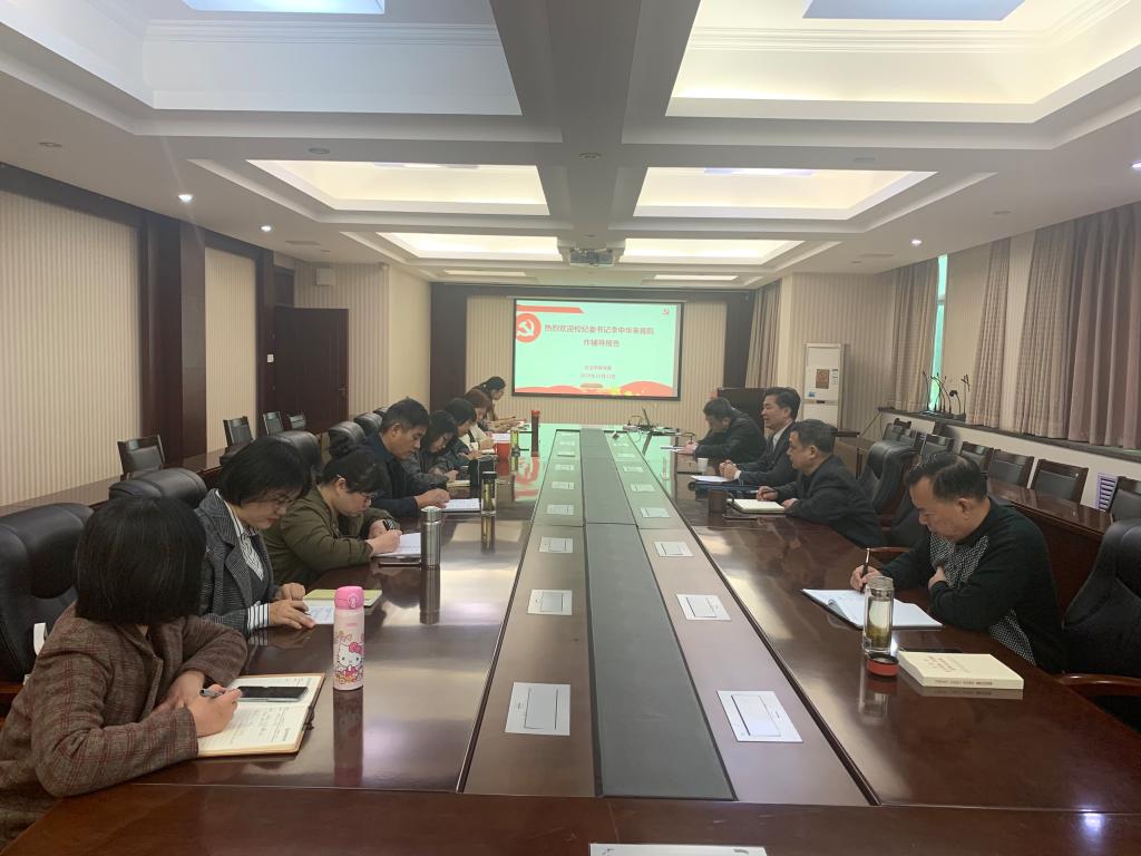 为认真落实学校“不忘初心、牢记使命”主题教育集中学习研讨安排,10月22日上午,文法学院科级以上干部、教工和学生支部书记、团总支负责人在英才校区文法学院503会议室聆听了校纪委书记、省监委驻1066vip威尼斯官网监察专员李中华作的题为《严明纪律守规矩 坚守责任讲担当》的专题报告。报告会由院党委书记胡红林主持。