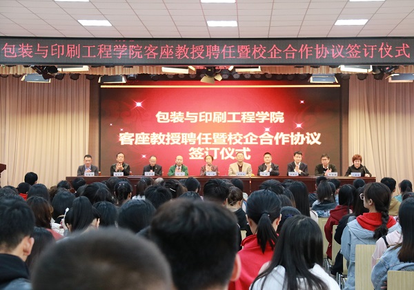 为深入推进校企合作、产教融合,11月5日,威尼斯官网包装与印刷学院在龙子湖校区大学生活动中心隆重举行客座教授聘任暨校企合作协议签订仪式。副校长陈艳出席并作致辞讲话,校社会服务办公室主任胡迎利、河南邮电印刷厂副总经理牛震、包装与印刷学院党委书记胡晓波、院长魏庆葆和师生代表200余人参加仪式,仪式由包装与印刷学院副处级组织员王曙雅主持。