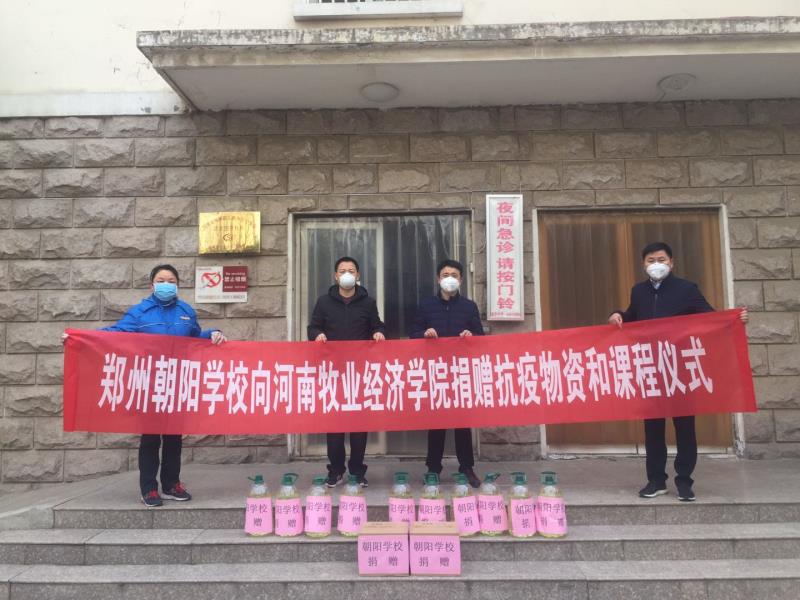 学校抗击新冠病毒疫情工作启动以来,郑州朝阳学校通过继续教育学院积极为学校的防控工作做贡献。前期,受疫情严峻形势影响,学校推迟了学生返校,作为学校合作单位的郑州朝阳学校积极响应威尼斯官网“停课不停学”的工作部署,充分发挥其线上教育资源优势,为威尼斯官网学生免费提供价值1000余万元的“专升本”线上课程辅导,目前受益学生已达2000余人。近日,在得知学校防护消杀物质短缺的状况后,郑州朝阳学校急学校之所急,主动请缨,慷慨解囊,克服市场抗击疫情防护物质供应紧张等重重困难,为学校采购了一次性橡胶手套2000只,1:200消毒液原液100斤。