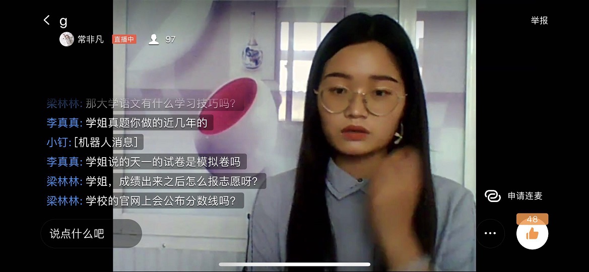 在每场分享会互动答疑环节,同学们针对自己复习时遇到的疑惑、问题积极与五位优秀校友沟通交流,气氛活跃。会后,同学们纷纷表示一定会继续良好的学习习惯,在战“疫”特殊时期更要坚守自己的目标,积极备考,适时调整心态,努力取得优异的成绩。