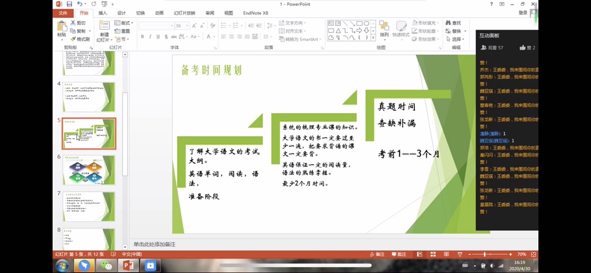 在各场经验分享会中,主讲人倾“囊”相授,为同学们的复习“指点迷津”,线上分享精彩纷呈。
