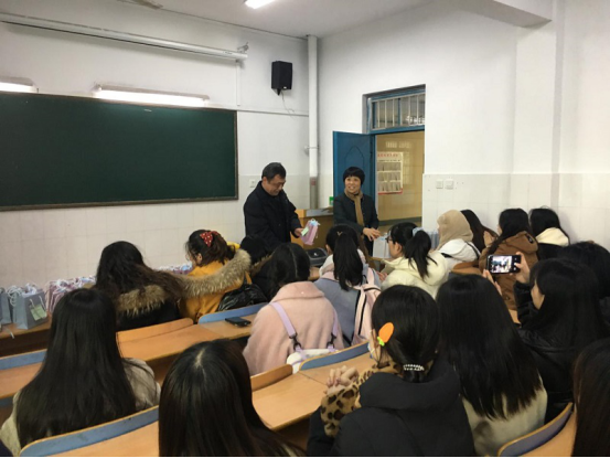 12月24日,文法学院党委书记胡红林、院长李国英为该院59名考研学子发放“考研加油包”,亲切慰问考研学子。