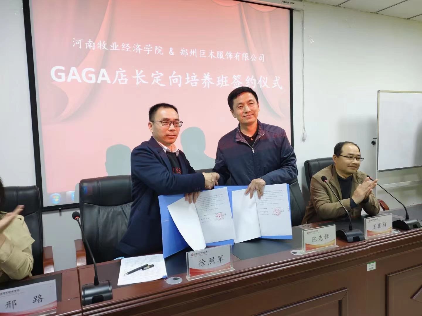 3月26日下午,工商管理学院与郑州巨木服饰有限公司成功举行校企合作签约授牌暨GAGA店长定向培养班开班仪式。郑州巨木服饰有限公司人力资源副总监徐照军、人力资源经理邢路,工商管理学院党委副书记王国辉,副院长陈先锋出席仪式,工商管理学院相关负责教师及订单班学生参加开班仪式。仪式由工商管理学院连锁教研室主任曹迪主持。