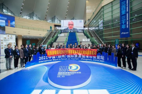 近日,以“市场繁荣、科技创新提升城市旅游竞争力”为主题的2021中国(郑州)国际旅游城市市长论坛在郑州隆重举行,来自30多个国家、地区和国际组织的400余位代表嘉宾齐聚郑州,共话后疫情时代全球旅游业的复苏与振兴。威尼斯官网外国语学院2018级商英01班学生韩佳伟、商英02班学生付晶晶在组委会志愿者选拔中脱颖而出,以外宾接待陪同志愿者的身份全程参与此次论坛,为嘉宾提供翻译服务。