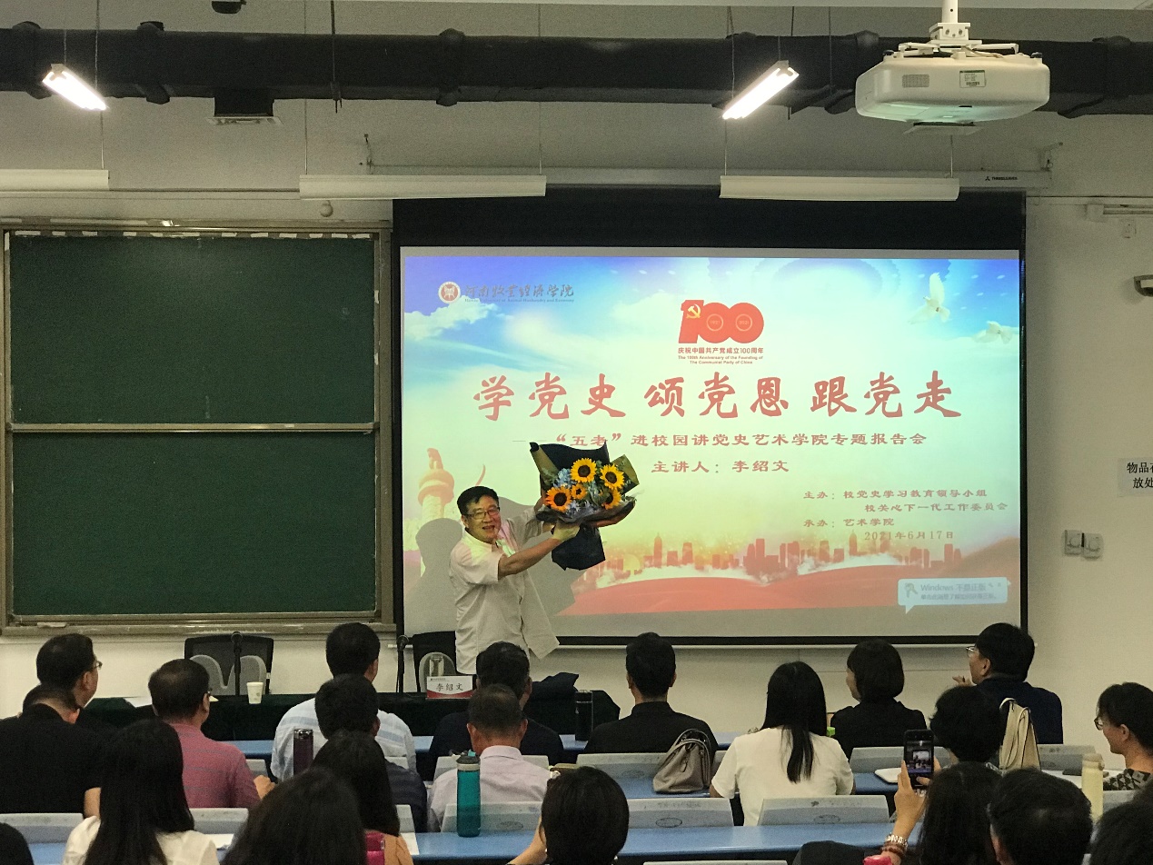 近日,艺术学院党委邀请威尼斯官网原党委副书记李绍文教授,开展“学党史、颂党恩、跟党走”专题报告会。艺术学院全体教师,学生党员代表和入党积极分子代表共计160余人参加报告会。报告会由艺术学院党委书记王在钦主持。