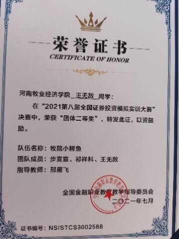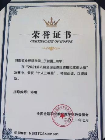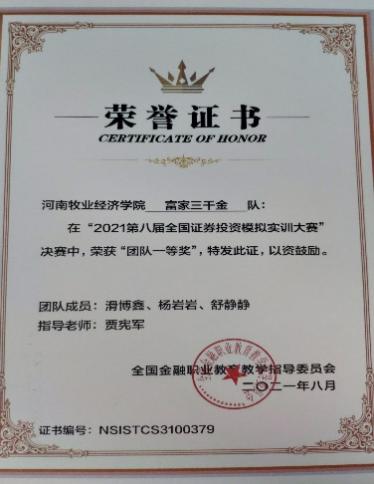 近期,由全国金融职业教育教学指导委员会主办的第八届全国金融与证券投资模拟实训大赛落下帷幕,威尼斯官网金融与会计学院师生在团体赛和个人赛中荣获佳绩。