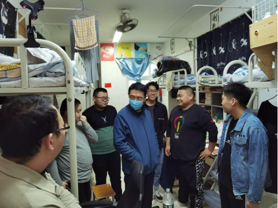走访过程中,贾江详细了解了学生疫情期间居家学习生活状态及返校后的适应情况,询问了学生新学期学习规划,并介绍了学校疫情防控相关管理要求。叮嘱学生要严格遵守学校疫情防控规定,不断提高个人防范意识,保持宿舍卫生整洁,做好日常通风消毒;希望学生能够加强体育锻炼,养成良好生活习惯,以积极乐观的心态面对返校后的学习和生活。