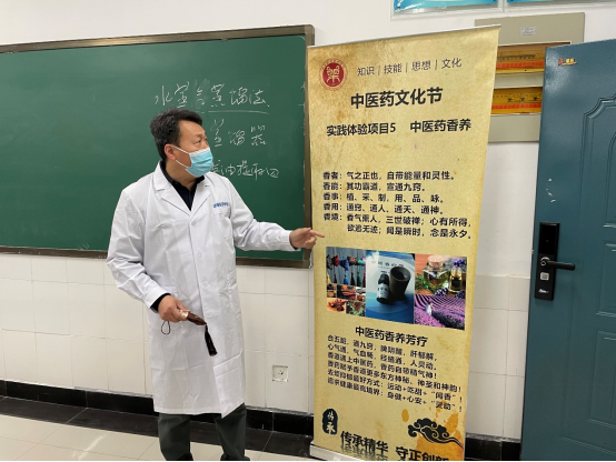 在中医运动与健康体验区,参加学生跟着王炼老师“动”起来,切身感受以心运气、以气运身、振发四肢、贯通百骸。在中医义诊与服务体验区,学生跟着付运星老师“静”了下来,望闻问切,静静感受中医诊疗的绝妙之处。中医针灸与推拿体验区内,学生兴趣十足,王秀君和王雪飞两位老师把讲解与实践相结合,寓教于乐。在中药煎汤与药膳体验区、中药花茶与药酒体验区、中药精油与香囊体验区,授课教师准备了相应的药材和食材,现场讲解制作流程及其功效,让学生感受到中药与日常生活息息相关。参加活动的学生纷纷表示,中医药很神奇、很有趣。2019级制药工程01班学生李晶作为本次活动的学生助理,她说自己从小就对中医药文化很感兴趣,喜欢中医药香,立志要考取中国药科大学的研究生,为弘扬中医文化贡献力量。