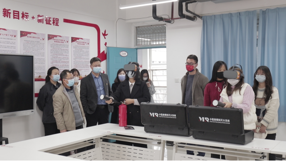 VR消防模拟体验现场,百年匠心(河南)文化科技有限公司负责人为师生示范VR虚拟灭火器的使用操作并组织现场学生进行不同场景灭火实操演练。广大学生踊跃参与,纷纷戴上头盔,拿起仿真灭火器,进行VR虚拟灭火操作。生动、真实的消防现场体验,既使学生增长了消防知识,也进一步提高了火灾防范意识。