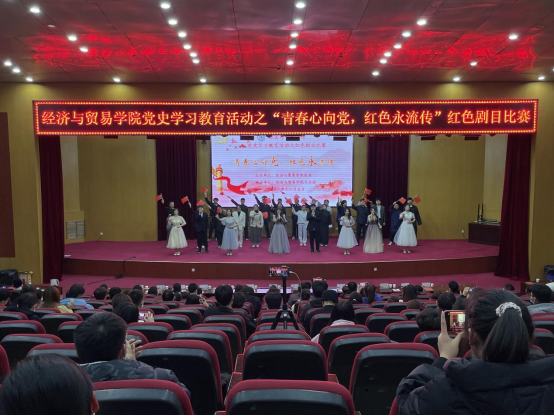 12月5日晚,经济与贸易学院在英才校区学术报告厅举行以“青春心向党,历史永流传”为主题的红色剧目决赛。经济与贸易学院党委书记张松刚,校党委宣传部副部长田景丽,经济与贸易学院党委副书记贾艳艳以及辅导员教师担任评委,经济与贸易学院2021级学生观看比赛。