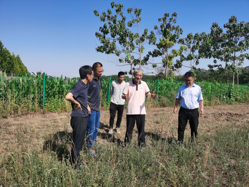 郭孝一行深入生产一线,到沈丘槐山羊核心养殖基地,考察了基地两年前建好的人工草地,研究牧草在生长和生产中存在的问题,并就草地建植、草地复壮及提高草地载畜量提出针对性整改意见。在沈丘槐山羊工程技术研究中心,大家不畏酷暑,深入到田间地头,实地调查分析,协助该中心筹划建设优质示范混播草地。