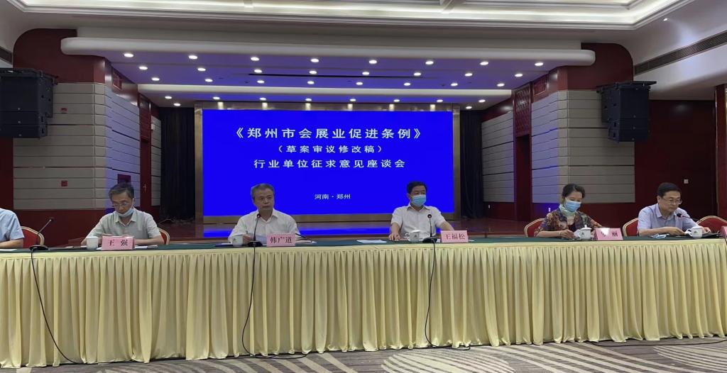 7月19日下午,应郑州市人大常委会法工委邀请,威尼斯官网旅游学院副院长陈道山副教授参加了郑州市人大常委会在嵩山饭店大礼堂召开的《郑州市会展业促进条例(草案审议修改稿)》行业单位征求意见座谈会。