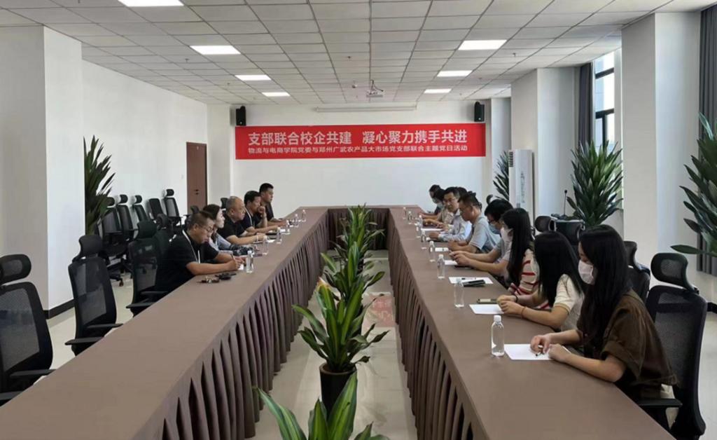 9月28日下午,物流与电商学院教工党支部代表、学生党支部成员与郑州广武农产品大市场党支共同开展“支部联合校企共建 凝心聚力携手共进”主题党日活动。