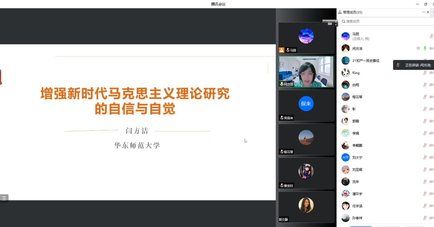 马克思主义理论是中国特色社会主义的前进指引,是中国共产党坚定信念的理论基础。如何推进马克思主义理论与中国实际更好的结合?近日,马克思主义学院邀请华东师范大学博士生导师闫方洁教授作《增强新时代马克思主义研究的自信与自觉》主题报告。马克思主义学院全体教师、马克思主义读书会学生代表聆听了报告,报告会由马克思主义学院副院长吴保来主持。
