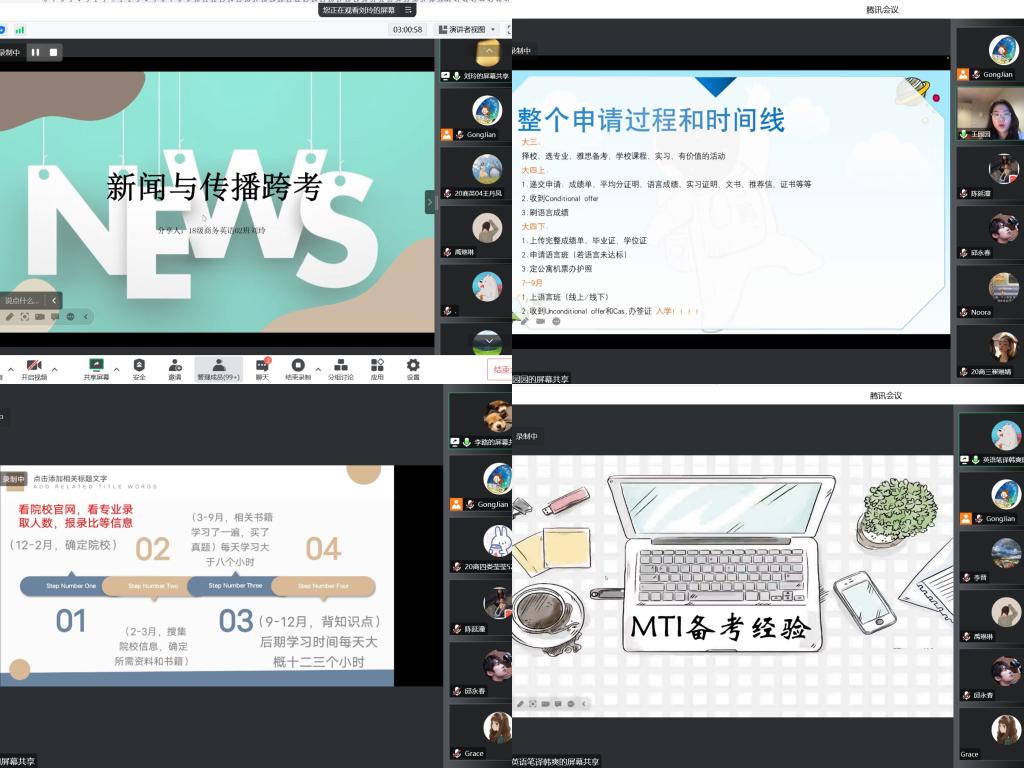 为进一步提升人才培养质量,10月27日下午,外国语学院以线上形式召开2020级商务英语专业学生考研动员暨经验分享会。外国语学院部分领导、相关专业课教师、优秀毕业生代表及考研学生参加会议。会议由外国语学院副院长巩坚主持。