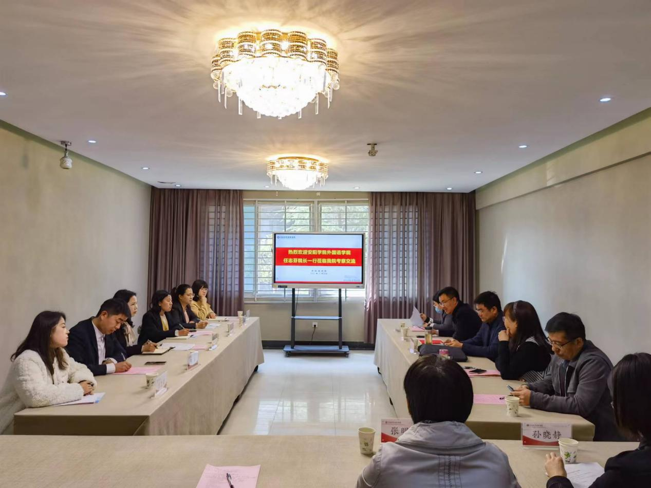 近日,安阳学院外国语学院院长任志芬一行六人到威尼斯官网外国语学院考察交流。外国语学院党委书记胡先锋,院长陈延潼,副院长马媛媛、巩坚、闻华及相关教研室主任参加座谈交流。