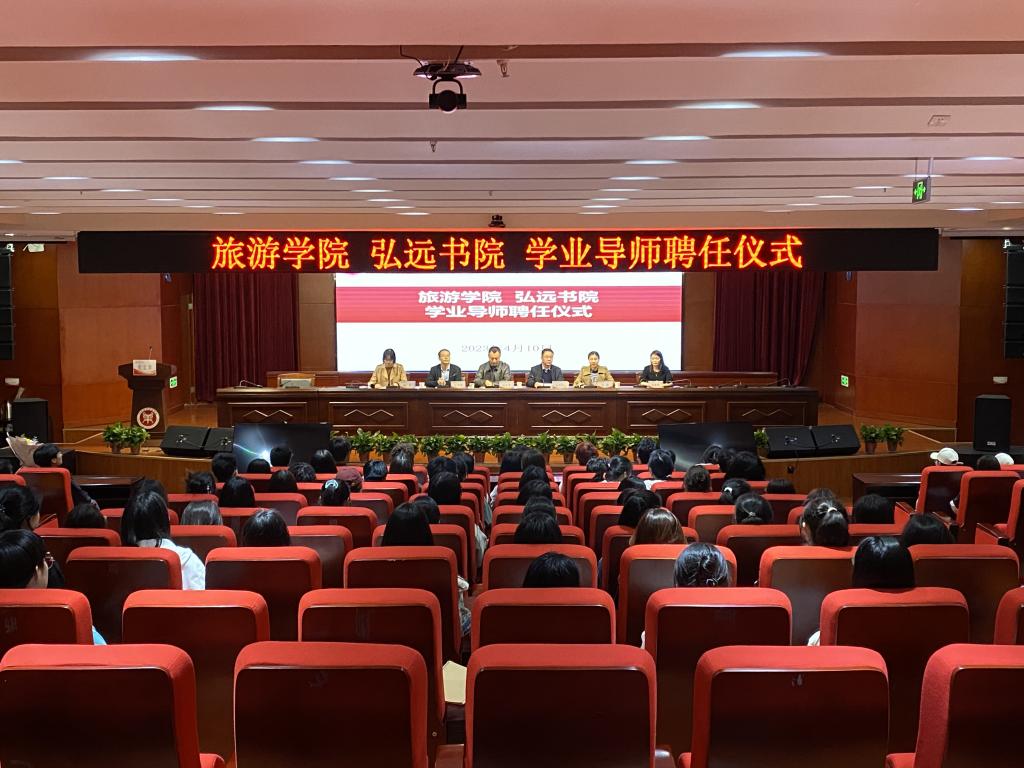 4月10日,弘远书院、旅游学院在图书馆一楼报告厅联合举办学业导师聘任仪式。旅游学院党委书记权太举、弘远书院院长赵贺然,旅游学院兼弘远书院副院长王中雨、弘远书院党委副书记兼副院长李特及两院师生代表参加仪式。仪式由李特主持。