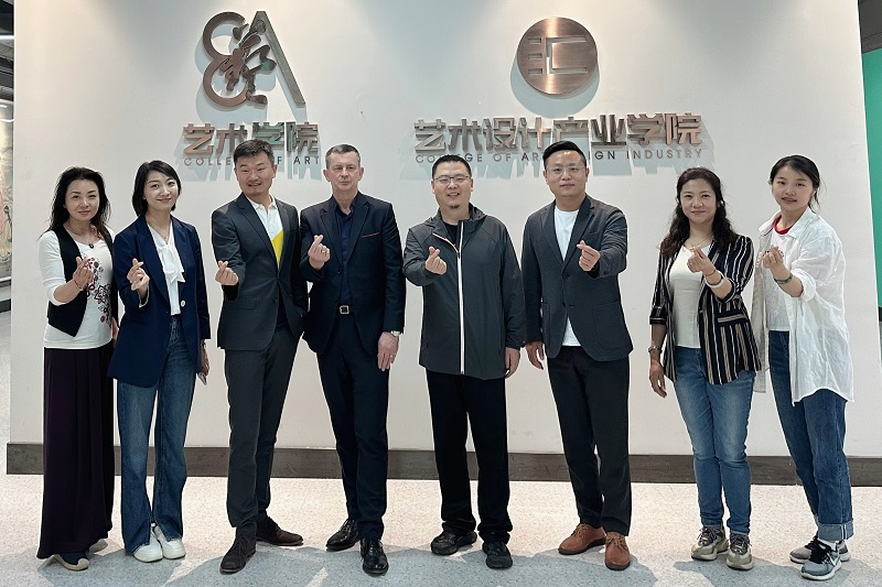 报告会后,张鹏、艺术学院副院长闫杰等同志陪同Phil Cleaver教授一行参观了艺术设计产业学院、陶瓷创研中心等地。