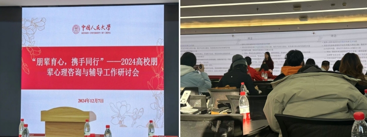 2024年12月7日,由中国人民大学党委学生工作部(处)主办,中国人民大学心理健康教育与咨询中心、中国人民大学朋辈心理中心承办的“朋辈育心,携手同行”——2024高校朋辈心理咨询与辅导研讨会在中国人民大学立德楼1826召开。我院两名学生代表参加了此次论坛。
