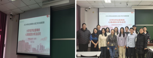 12月13日-26日,由北京高教学会心理素质教育研究分会主办的2024年秋季学期北京高校心理工作沙龙第四期、第五期在中国石油大学(北京)、华北电力大学如期举行。沙龙的主题分别是“大学生学业困难心理成因分析及应对”及“从家长愤怒情绪的转化看家校协同的助力作用”。我院心理教师、班主任及学生处教师参加了沙龙。