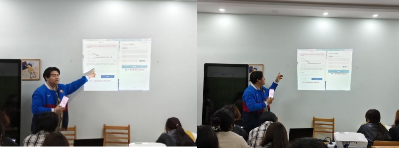 为提升心理委员的实际操作能力,培训会还针对新学期启用的心理健康普查系统进行了详细演示,心理健康协会朋辈部干部董玉成同学向同学们讲解了系统登录、问卷填写及常见问题处理流程。心理中心要求各班心理委员积极协助同学完成普查操作,确保全员参与、数据真实,为后续心理健康工作的精准开展提供科学依据。