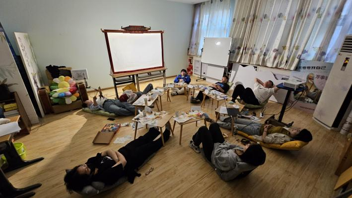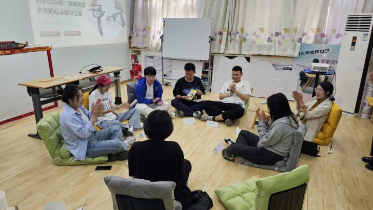 活动尾声的穿越冥想放松环节,将同学们的身心调节到最佳状态。大家调节座椅靠背至舒适角度,跟随引导语沉浸其中,在冥想中舒缓压力、放松身心。冥想结束后,老师引导同学们思考自己选择的角色及原因,剖析角色背后反映的当下状态。同学们的真诚分享引发强烈共鸣,让大家对自我有了更深层次的认识。