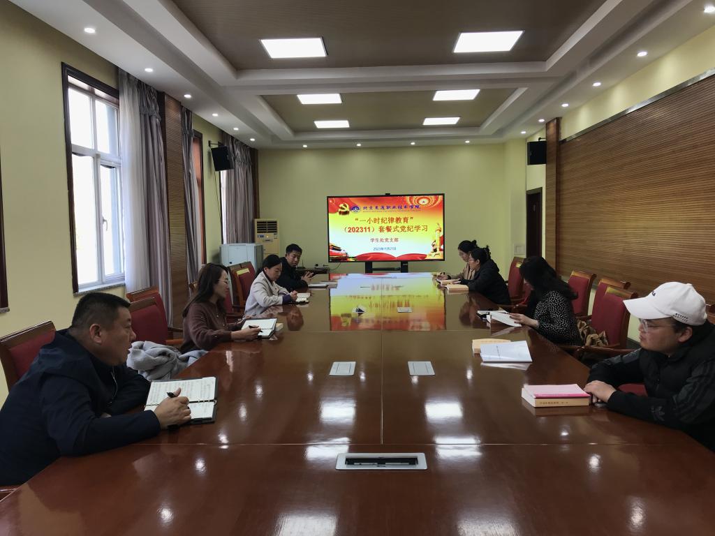 为深入学习贯彻习近平新时代中国特色社会主义思想,着力培育和践行社会主义核心价值观,深入推进社会主义精神文明建设,更好用中国精神激发中国力量。同时教育引导党员干部加强作风建设,严明纪律规矩,坚持廉洁底线,按照学生处党支部既定学习计划,2023年11月21日上午,学生处党支部在办公楼一层会议室召开习近平新时代中国特色社会主义思想专题学习会暨“一小时纪律教育”党纪学习会,支部全体党员参会。