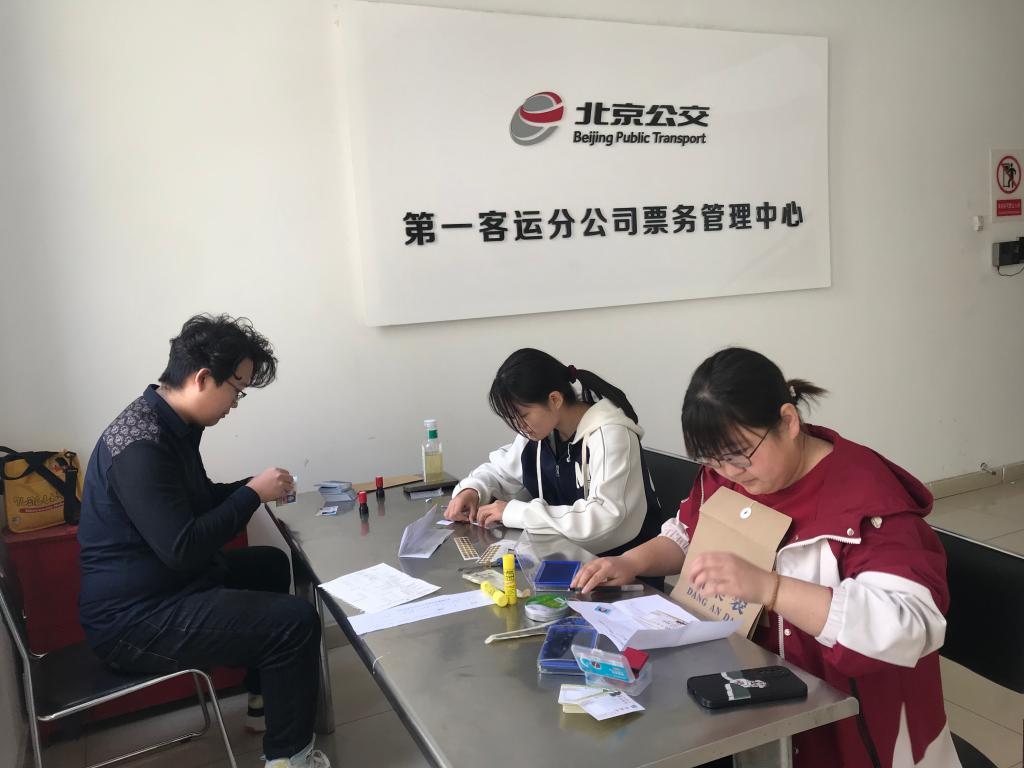 现场办理过程中志愿者分工明确,按照办理公交卡流程有序进行,团队相互配合,井然有序,高效地将54张公交卡办理完毕。经检查无误后将公交卡分别按专业班级进行分别存放,以便将公交卡发放到各同学手中。办理结束后并将办理过程产生的垃圾一一清理,保持了公交总站办理场所的干净整洁。