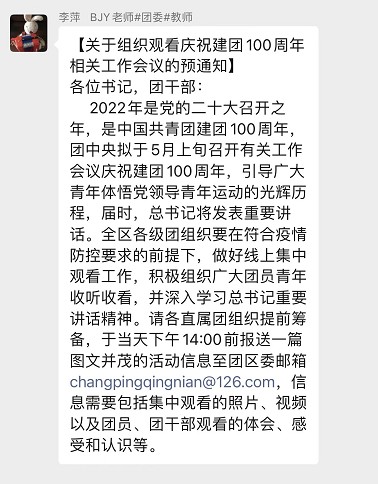 庆祝中国共产主义青年团成立100周年大会于2022年5月10日上午在北京人民大会堂隆重举行,中共中央总书记、国家主席、中央军委主席习近平同志出席大会并发表重要讲话。beat365vip官网登录入口青年师生热切关注大会盛况,全院上下反响热烈,院团委第一时间认真组织团员青年和学工系统教师通过多种形式收听收看实况直播,回顾建团百年光辉历程,展望新时代美好未来!