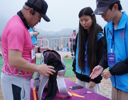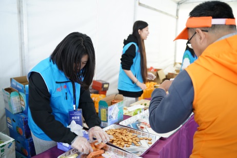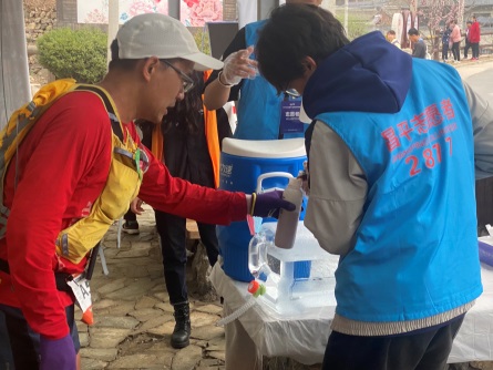 赛事当天,在越野赛道区域,志愿者们为选手提供道路指引;搬运摆放补给品,并向参赛选手进行发放;起终点,志愿者们热情地为选手呐喊助威,及时配合体能不支的选手开展帮扶和救助,他们用言语和行动向参赛选手们提供最有力的支持和鼓励。在主会场区域,志愿者们完成了近千份完赛物资的装袋、整理工作并在各工作岗位上机动服务。选手完赛,志愿者们送上一句句“恭喜完赛”为选手们点赞,同时,高效快捷地将完赛包递到选手手中,及时递上补给品。志愿者们细致专业的服务获得了参赛选手的一致好评。