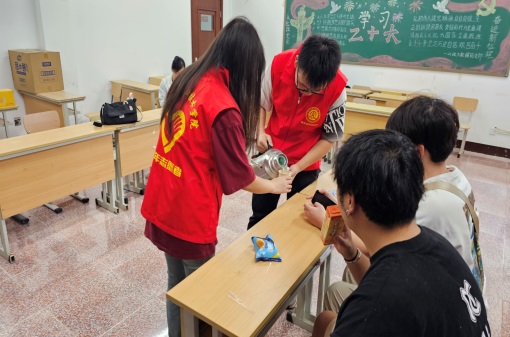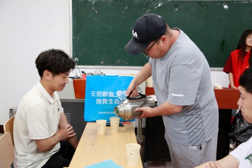 活动现场,学院红十字会志愿者团队引导参加献血的同学填写知情同意书,协助医务工作人员服务完成测量血压、采集血样、检测血液等程序。学院党委领导、学生处及各系教师也来到现场,时刻关注每位献血者的身体状况,做好献血者的医疗保障工作。院团委还为献血同学精心准备了红糖水,向献血同学发放了包括茶饮、面包等物资,充分表达了学院对献血同学的敬意。献血的同学们将爱心伴随血液灌注进血袋中,体现了作为我院青年的勇气与担当,展露出当代青年应有的精气神。参与活动的每一位同学都为自己能够为社会做出贡献而感到光荣和自豪,希望能将这份爱心传递下去,托举起更多生命。