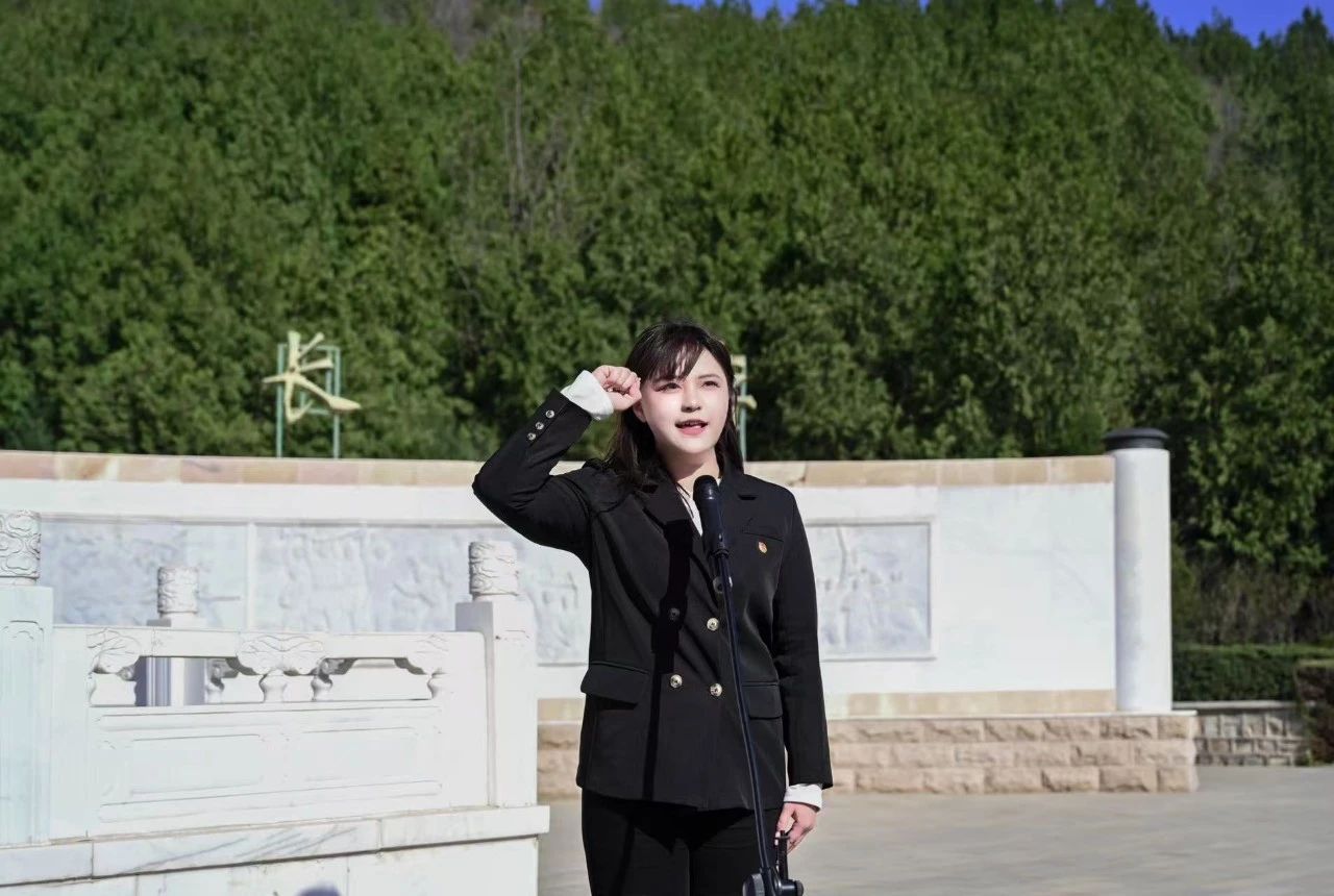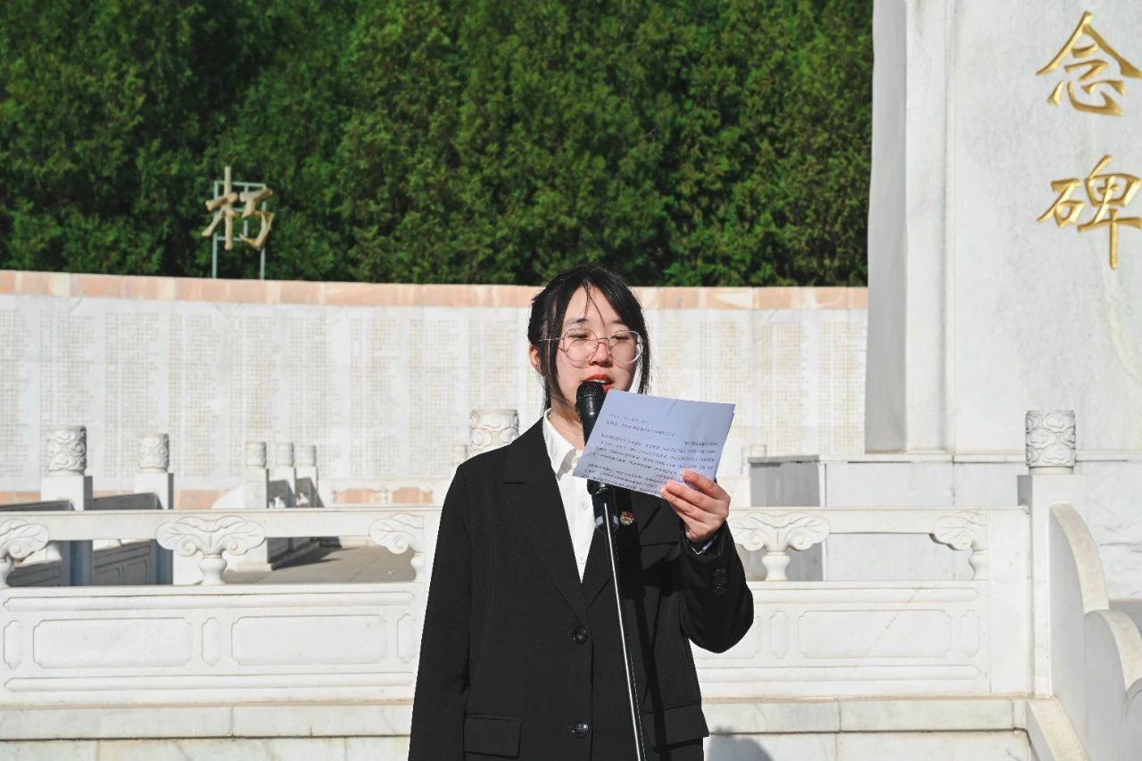 在烈士纪念碑前,团员们纷纷高举右拳,在领誓人吴佳益同学的带领下,重温入团誓词。同学们以铿锵誓言重温青春承诺,铿锵有力的声音回荡于烈士陵园之中,既是缅怀之情的集中抒发,更是接续奋斗的庄严宣告。