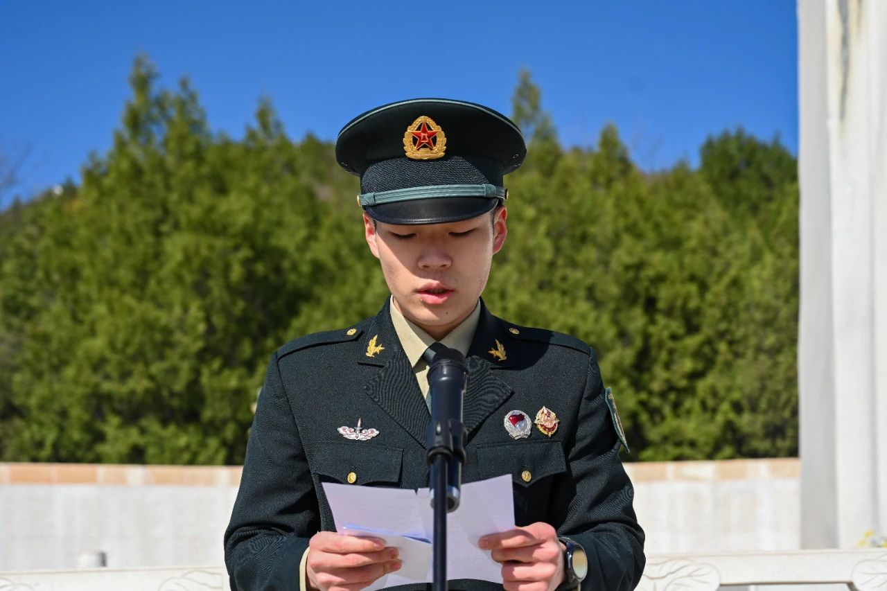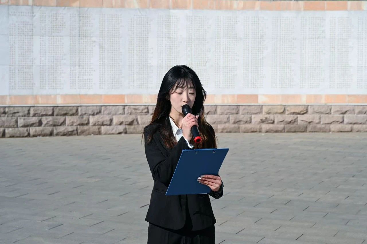 祭奠仪式现场庄严肃穆,全体师生身着黑色正装,怀着崇敬的心情,整齐列队于烈士纪念碑前。在雄壮的国歌声中,仪式正式开始。国旗班代表和团支书代表先后发表讲话,表达对革命先烈的深切缅怀与崇高敬意。