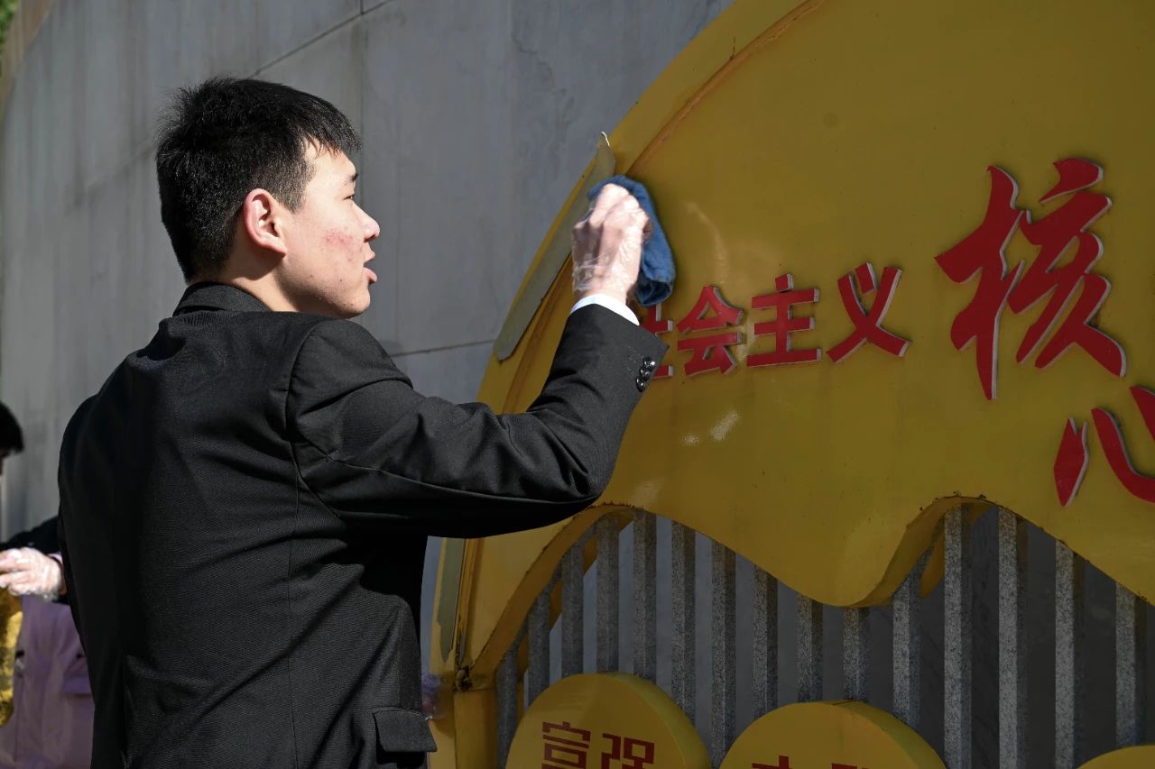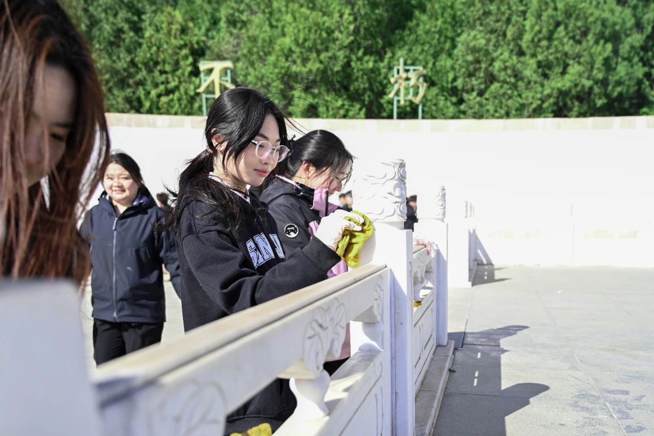 仪式结束后,同学们分组开展陵园环境清扫工作,仔细擦拭纪念碑、英烈墙以及国旗台周边的每一丝灰尘、扫净园内的每一片的垃圾,用实际行动表达对英烈的缅怀之情。