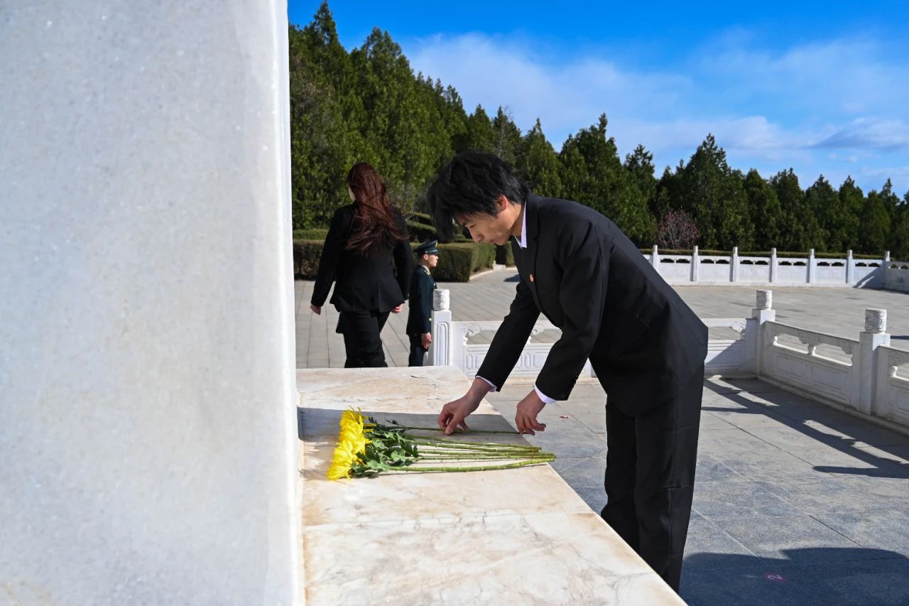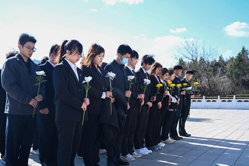 随后,全体人员脱帽默哀,向为国家和人民英勇献身的烈士们致以深切哀悼与崇高敬意。默哀毕,同学们缓步走向烈士纪念碑,敬献鲜花,寄托对先烈的无尽追思。