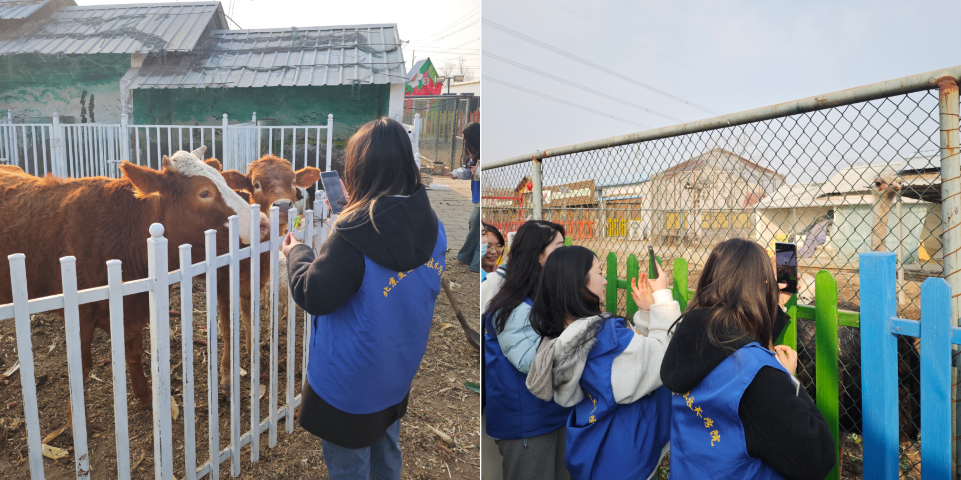 在座谈会后,合作社负责人崔维国带领两校师生参观了占地100亩的智慧大棚。崔维国老师对草莓品种、培育技术、监测设备以及产量进行了详细介绍。同学在品尝草莓的同时,更直观感受到了现代农业的魅力以及乡村振兴政策为老百姓带来的利好。 随后,我院师生在负责人的带领下还参观了园区里的多肉大棚以及“动物乐园”,同学们在投喂鸵鸟、抚摸牛羊的过程中,切身感受生态农业的人文温度。