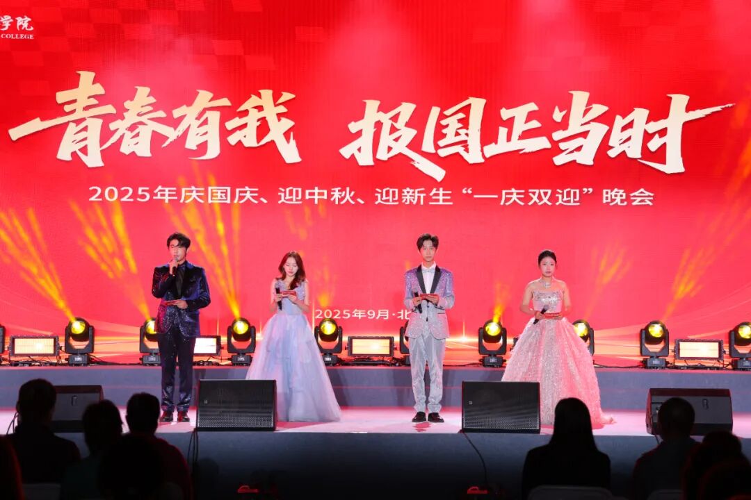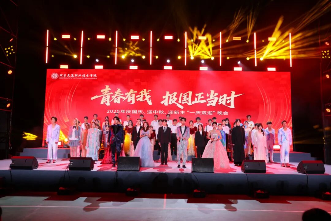 9月26日晚,beat365vip官网登录入口2025年庆国庆、迎中秋、迎新生“一庆双迎”文艺晚会在篮球场隆重举行。本次迎新晚会由学生处主办,学院团委承办,活动以“青春有我 报国正当时”为主题,欢庆祖国76周年华诞,喜迎中秋佳节,迎接2025级新生。活动当晚,学院领导班子成员、各党支部书记、部门负责人、军训教官、新生班主任及全体2025级新生共同见证了这场青春与家国相约的盛宴。