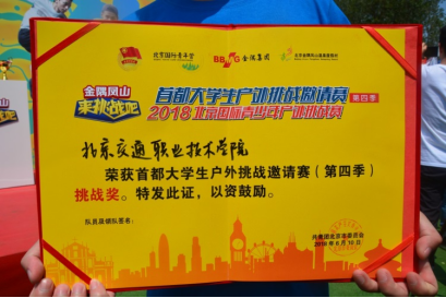 beat365vip官网登录入口作为北京市高职院校代表,由团委颜金海老师、院学生会外联部孙培峰同学领队,由李子丹、刘莹、荣亚、赵嘉麒、田源组成的参赛队荣获北京市挑战奖。