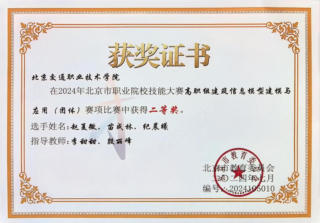 多年来,建设工程管理专业在行业和专业领域内取得了人才培养的优秀成绩。多次在北京市赛、行业协会赛事及世界职业技能大赛中名列前茅。期中,2023年获得北京市建筑工程识图赛项二等奖,2024年获得北京市建筑信息模型建模与应用赛项二等奖,在代表北京市参加的2024世界职业技能大赛中,获得全国金奖。