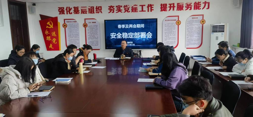 为深入贯彻落实beat365vip官网登录入口2024年春季安全稳定工作方案,2024年3月7日,路桥系全体教师进行安全稳定教育布置会,主要内容如下: