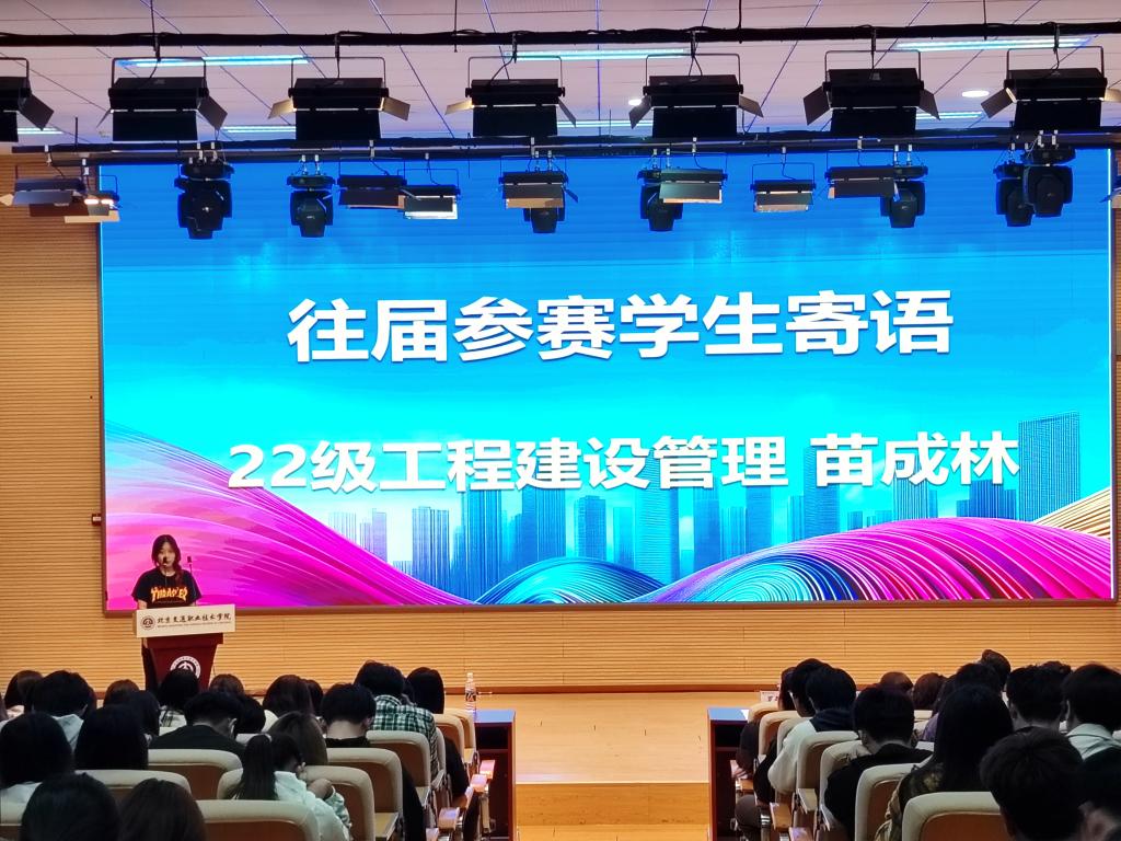往届参赛学生、2024年世界职业技能大赛金奖获得者、22级工程建设管理专业苗成林为路桥学子寄语,她结合自身过往参赛时历经的种种挑战与积累的宝贵经验,从赛前准备、团队协作、心态调整等多个关键维度,毫无保留地进行了细致分享。最后,她衷心预祝本次活动能够顺利举办、圆满成功,助力更多路桥学子在赛事中绽放光彩、收获成长。