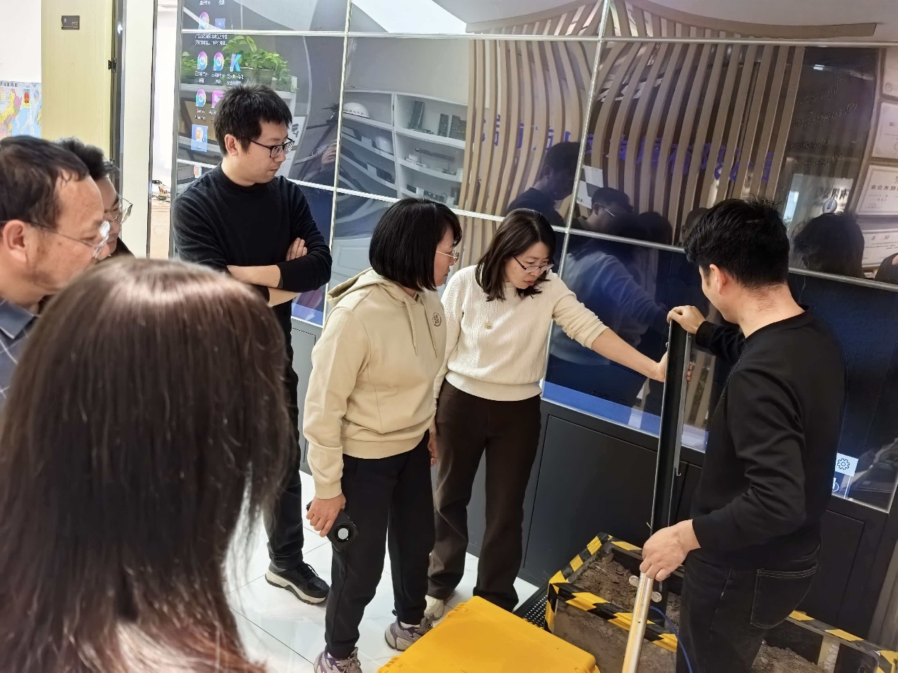 随后,教师们参观了企业研发工程中心,实地考察各类智能传感器设备的应用场景与系统集成方式,包括静力水准仪、北斗监测站、振动传感器、裂缝监测装置等,进一步理解了物联网技术在基础设施健康监测中的实际运作模式。